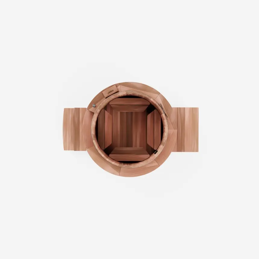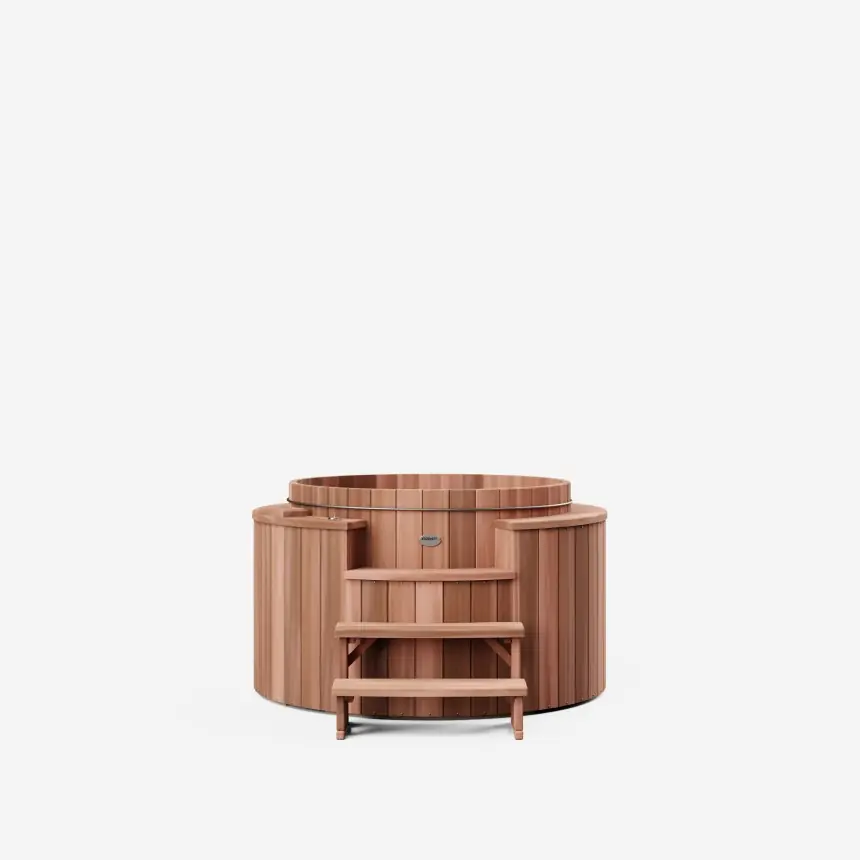 The Størvatt above-ground wooden spa, a registered design, is unique. The circular cladding in 38mm thick solid red cedar gives a sleek, aesthetic appearance and good thermal insulation.